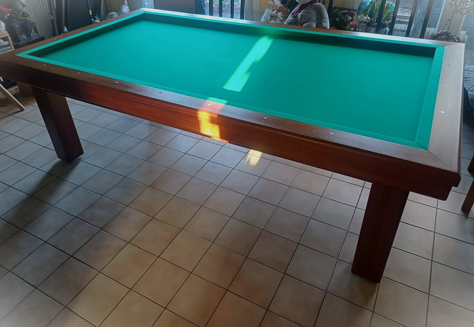 Billard en bois massif, ardoise de 30 mm, réception filets.